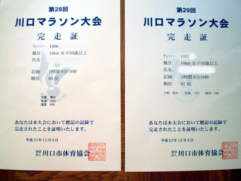 先日の川口マラソン、なんと去年と全く同じタイムでした。
