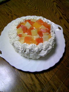 年末にもらったスポンジケーキの台があり、ご賞味期限が1月15日くらいだったので、そのまま冷蔵庫に入れていたのですが、買っておいた生クリームのご賞味期限がそれより前だったので、仕方なく生クリームをホイップ・ホイップ・ホイップ!