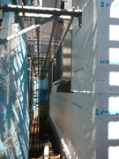 建物の外壁には防水シートが張られていました。