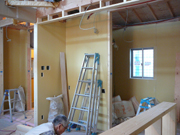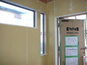 ただいま内装屋さんがクロス貼りの真っ最中。