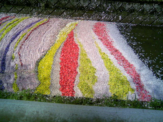 西縁沿いの桜はほとんど散っていましたが、遊歩道に舞い降りた桜の花びらがきれいで、満開の時とはまた違った風情がイイ感じです。