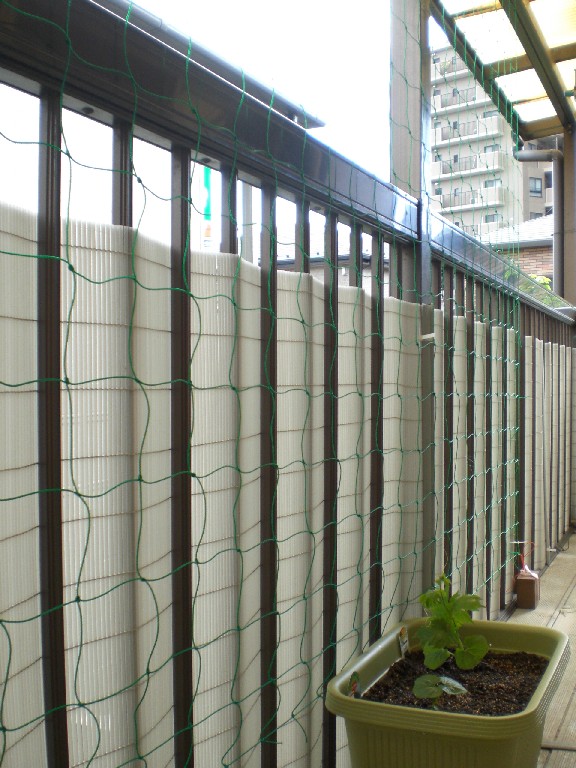 ベランダにつるを這わせるネットを張るのが1人では無理そうだったので、兄に助けを求め、きれいに出来上がり!